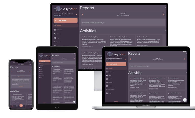 Unlike standard journaling apps, Asynchor uses advanced AI to summarize, organize, and analyze your thoughts. It transforms raw input into a searchable knowledge base and supports team-wide insight sharing, decision tracking, and progress monitoring.